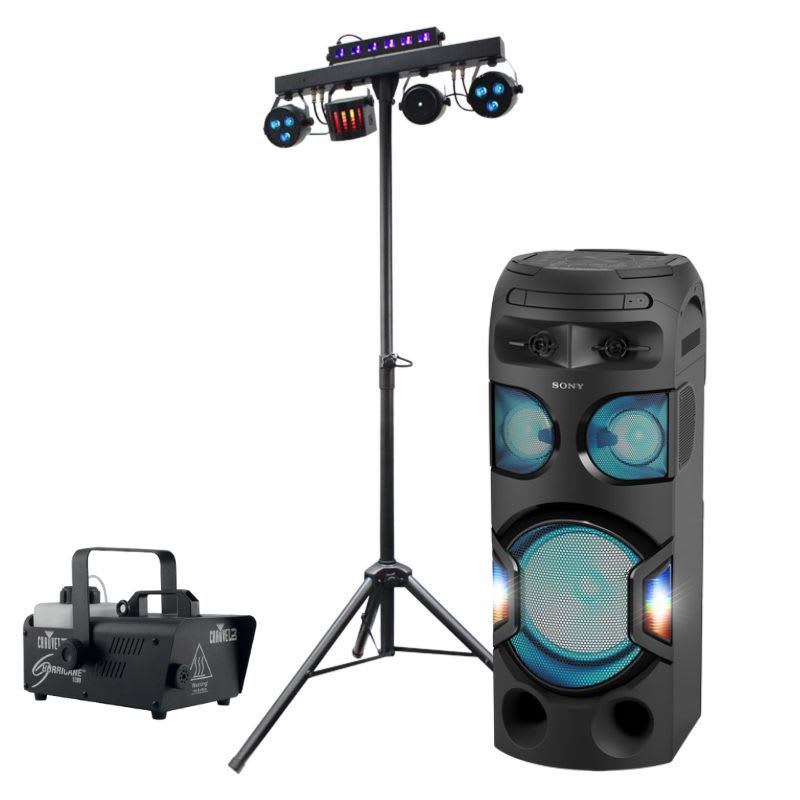 The Club Package 1.5 is an evolution of Club Package 1.0. Our new Sony Tower Speaker 550W is major upgrade to our JVC Tower Speaker 350W. It will transform any garden party into a full-blown rave experience. Sony Tower Speaker 550W is still a user-friendly sound system with simple controls. With Gesture and TAIKO mode you will add personal touth to your favorite songs. it works well in tandem with Equinox lighting system that will take care of your light show that will be enhanced by Fog Machine 805W. Equinox lighting system can be controlled by a remote or setting panel on the back, it will let you choose auto light shows or sound-activated light shows.