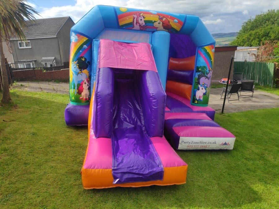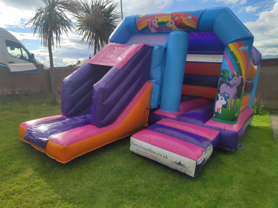 12ft x 18ft Multicolor Jump 'N' Slide Bouncy Castle with interchangeable artworks. Jump 'N' Slide is an excellent example of a great all-arounder Bouncy Castle, a large jumping space with added slide for maximum fun.