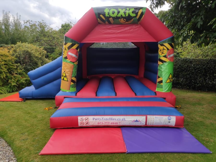 Enter the danger zone with Toxic Bouncy Castle with a slide