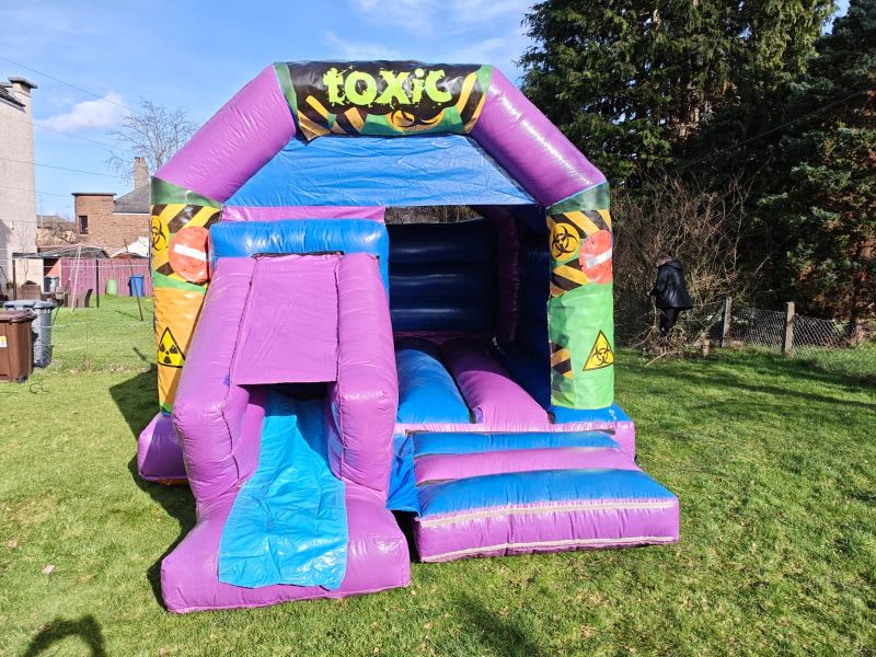 Enter the danger zone with Toxic Bouncy Castle with a slide