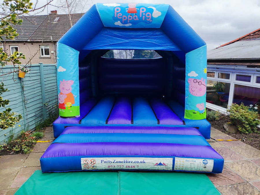 12ft x 15ft Blue & Purple Peppa Pig bouncy castle.