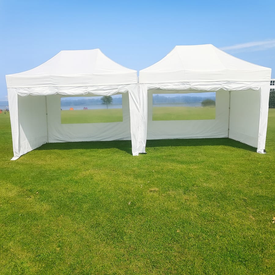 *temporary photo for illustration purposes only* 3m x 9m White Party Gazebo for times when 3m x 4.5m simply is not big enough.