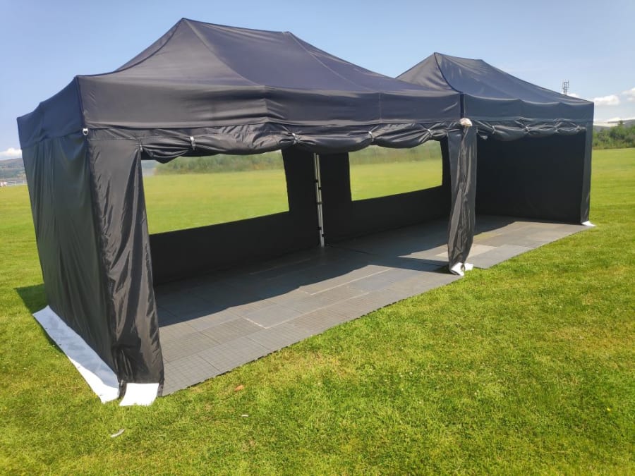 3m x 9m blackout Party Gazebo for times when 3m x 4.5m simply is not big enough. With Non-Slip Flooring for occasions when dry shoes and hard floor is essential.