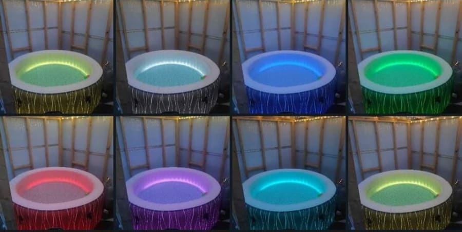 Hollywood AirJet Hot Tub is equipped with remote controlled LED lighting. Rapid heatig pump heats water tepmerature approximately 1°C an hour for energy saving purposes we advise filling up straigt from hot water tap where possible.