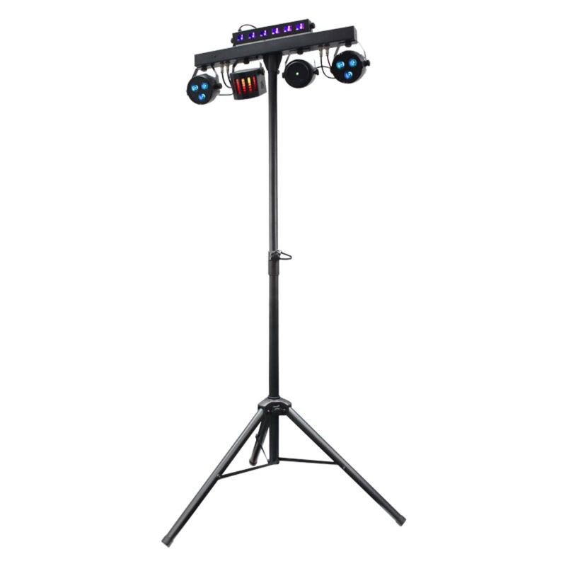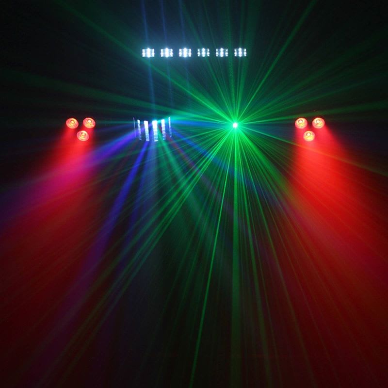 can be controlled by a remote or setting panel on the back, it will let you choose auto light shows or sound-activated light shows.